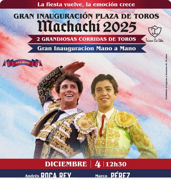 La localidad ecuatoriana de Machachi (24.200 habitantes) vivirá un acontecimiento histórico el 4 de diciembre de 2025, a las 12:30, (18.30 horas en España) con la gran inauguración de su nueva plaza de toros, un festejo que marca el regreso oficial de los espectáculos taurinos a la zona en el departamento de Pichincha, con más de tres millones de habitantes.