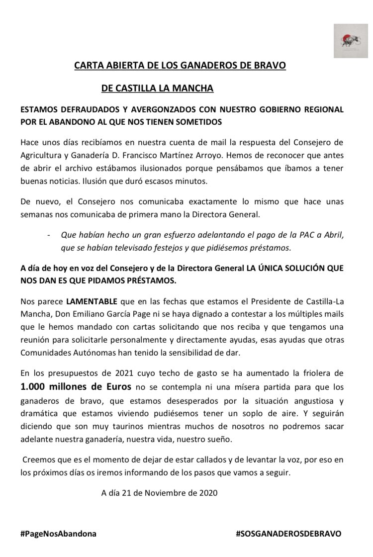 Re: Carta de los ganaderos de Bravo de Castilla La Mancha