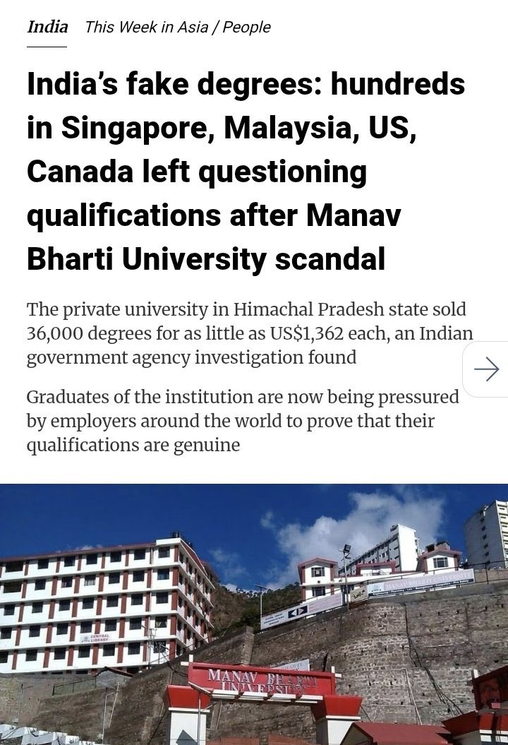 En la India una universidad privada vendía títulos universitarios: varios miles según investigaciones, en Canadá, Estados Unidos y otros países.