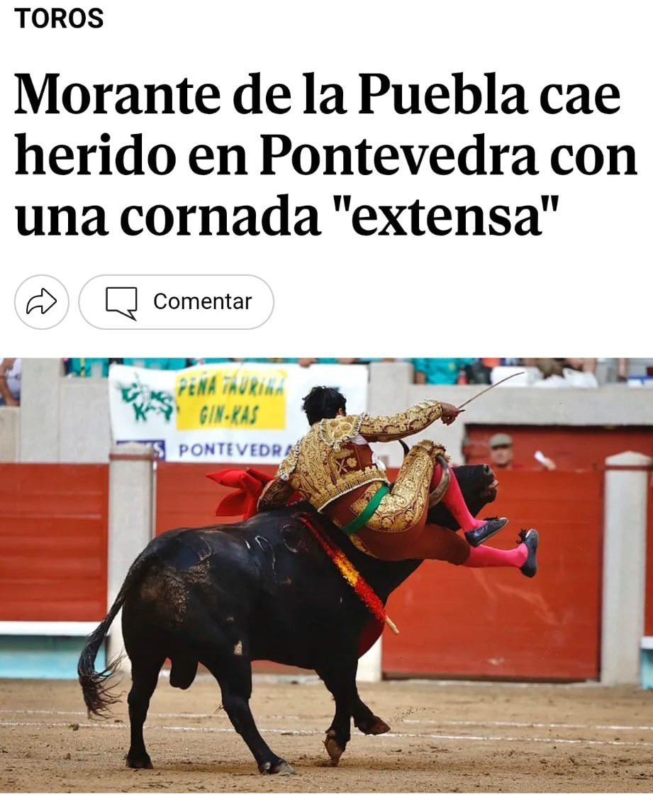 En 3 días: voltereta en Marbella, susto en el Puerto y hoy cornada en Pontevedra. Y tanto lo de Marbella como lo de El Puerto pudo haber sido peor. Pronta recuperación.