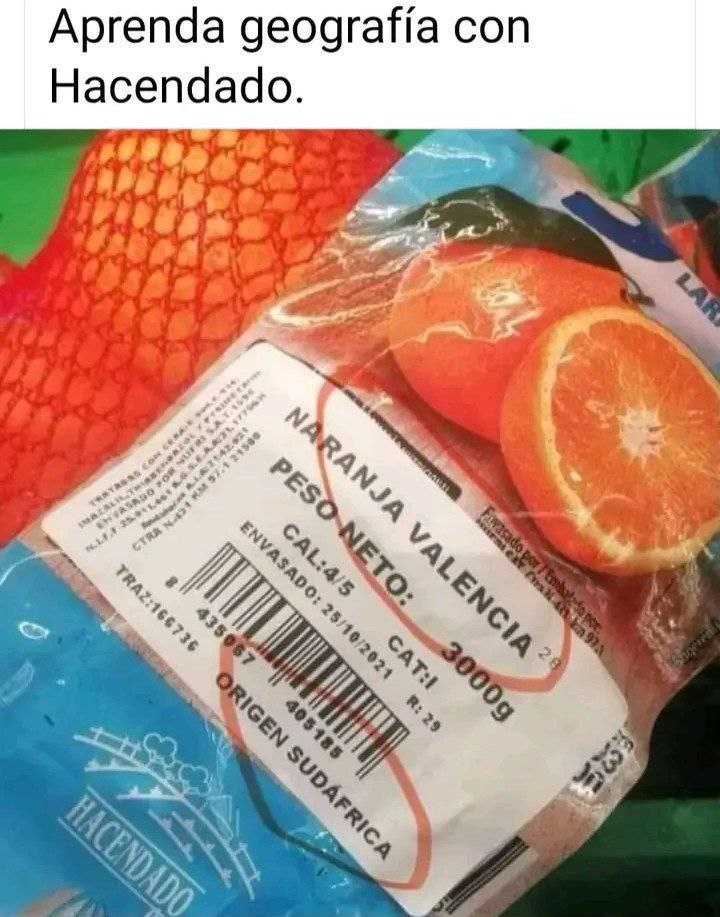 La temporada de naranja en España no es suficiente para satisfacer toda la demanda, pero recuerda: hay una variedad de naranja llamada "Valencia". Recuérdalo, y fíjate en el país de origen. Siempre.