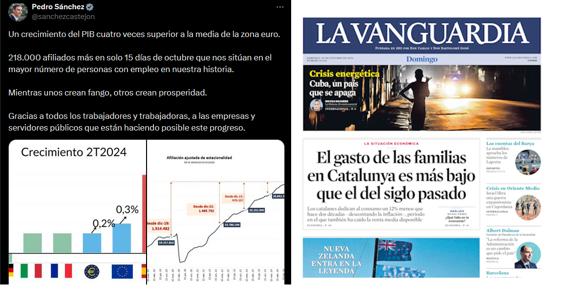 Toda la izquierda va contra la realidad: no hay más que leer el titular de La Vanguardia de Barcelona:
