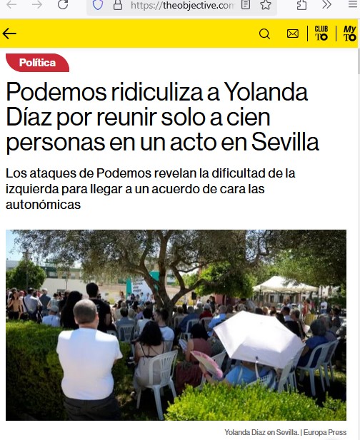 Uno de los grupos más activos contra la tauromaquia es Sumar, el partido o lo que sea de Yolanda Díaz. Pues bien, este partido convocó un acto en Andalucía con presencia de Yolanda Díaz y acudieron... menos de cien personas.