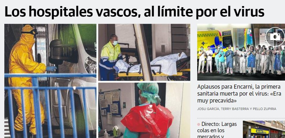 Los hospitales vascos están al límite. Ya no se atienden otras enfermedades y los que trabajan no pueden tener accidentes, porque las ambulancias tardan horas en acudir al lugar del accidente y en el hospital quedarían mezclados con los contagiados por el coronavirus y tendrían que esperar cola. Nada se dice de lo que está pasando. De la tragedia de los muertos. Ni de la pasividad de las autoridades.