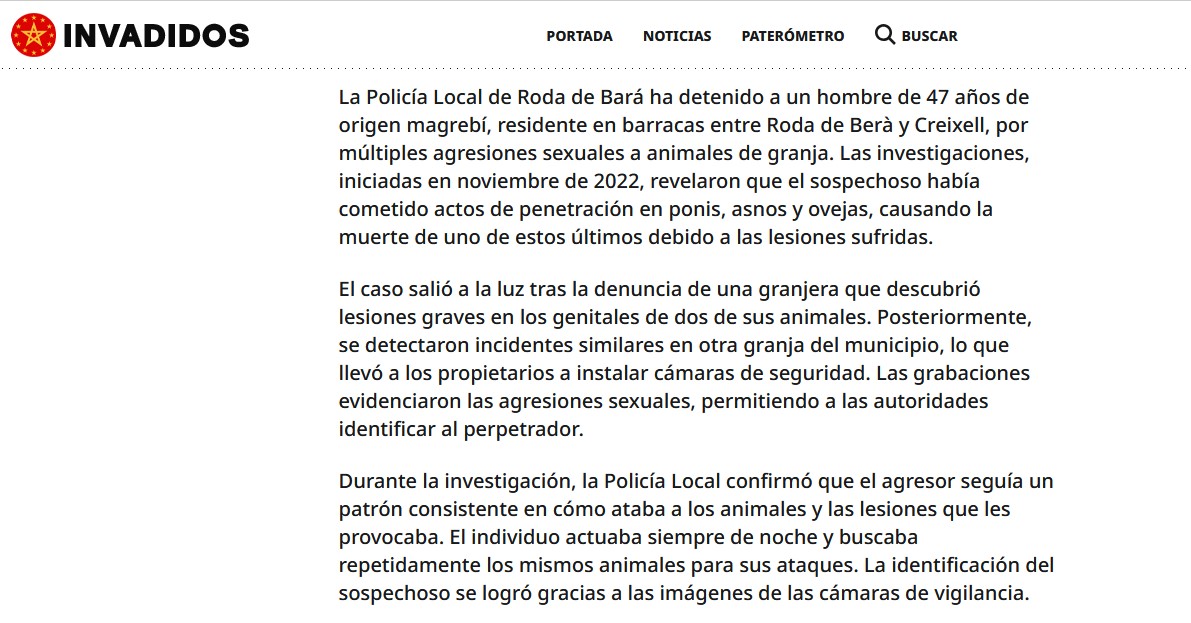 La televisión regional de Cataluña ha informado de la detención de un individuo de 47 años acusado de violar burros, ponis y ovejas en una granja de Tarragona. La tv3 de la región omite el dato que ya sabéis "el origen" de este sujeto.