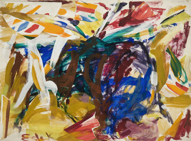 Elaine de Kooning sunday Afternoon La tauromaquia, un tema que había fascinado a artistas como Goya y Picasso, se convirtió para Elaine en una metáfora de lucha, pasión y tensión entre vida y muerte. Sus obras taurinas no buscan una representación documental, sino que capturan la esencia emocional del espectáculo: toros y toreros se desdibujan en un torbellino de pinceladas rápidas, con una paleta audaz y vibrante que evoca la energía cruda del ruedo. Estas piezas, marcadas por un dinamismo intenso, reflejan su interés más amplio por el movimiento del cuerpo humano y animal, una constante en su obra que también exploró en series sobre jugadores de baloncesto. En su enfoque, las corridas se transforman en una danza visceral, donde la abstracción y la figuración se entrelazan para transmitir la carga psicológica del momento.