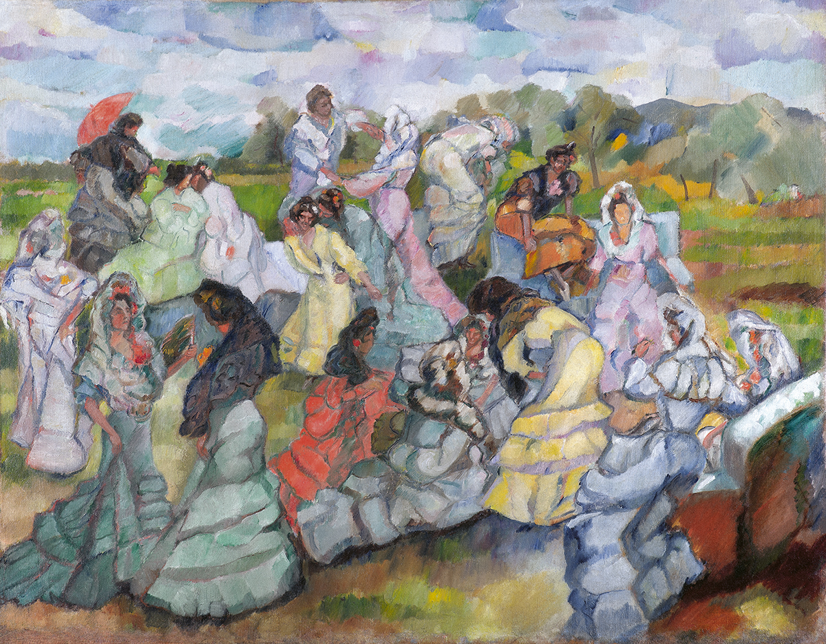 Durante la década siguiente recorrió España, el norte de África y el sur de Francia. Se dejó empapar por la luz de Sevilla, por los patios andaluces, por el movimiento de los cuerpos gitanos, por el fulgor de las fiestas. Sus temas fueron los que ardían: el desnudo femenino, los jardines frondosos, los retratos de mujeres sin artificio. Pintaba como quien celebra, no como quien documenta.