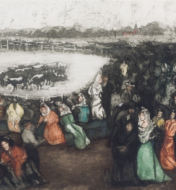 Pintó escenas taurinas sin convertirlas en género. No hay sangre ni estoque. Hay un toro que es presencia sagrada, y un ruedo que es escenario de misterio. En Toros en Ronda, por ejemplo, no asistimos a una faena, sino a un acto de veneración solar. La plaza es un crisol, y el toro, un centro magnético.