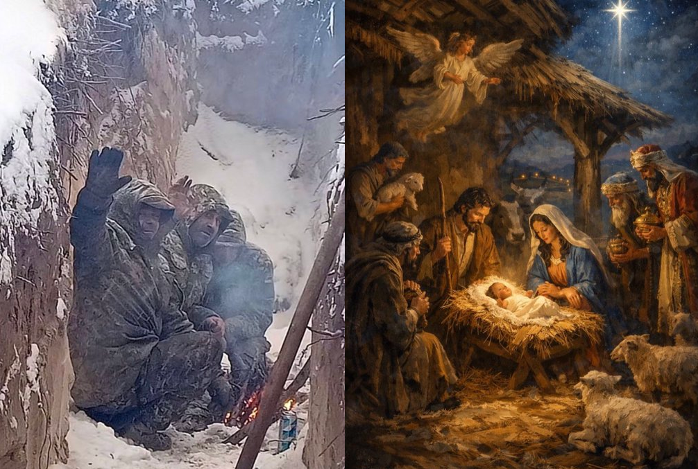 Feliz navidad, y próspero año nuevo... yo diría que estas imágenes van muy juntas, Soldados de Ucrania y Portal de Belén