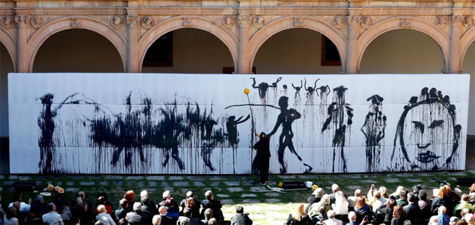 Mikel Barceló Actuación sobre arte efímero La imagen fantasma foto Bernardo Pérez
