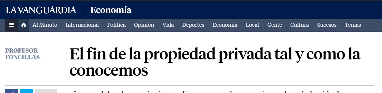 Me pasan este recorte sobre un titular en un diario conservador, "El fin de la propiedad privada tal y como la conocemos",y es un ejemplo más de neo-lengua, no lavado de cerebro, pero el paso anterior. ¿Bueno o malo para el sóviet?