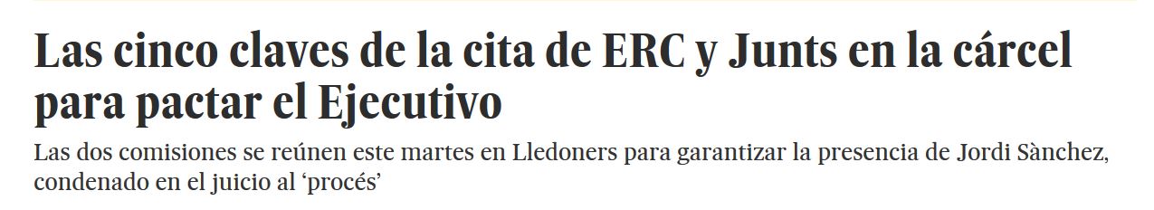 ERC y Junts -el partido de Puigdemont, ex CiU- tratarán en la cárcel sus asuntos de gobierno.