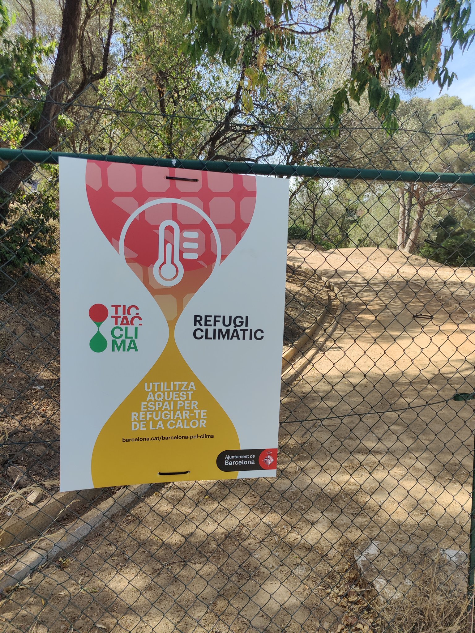 Refugio climático con foto, por si alguno no se cree el "invento" de los catalanes para combatir el cambio climático: Poner un cartelito.