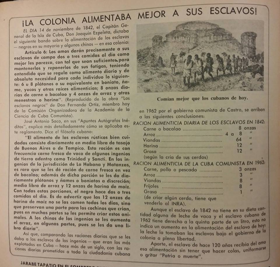 Lo subo para que la gente de izquierda tan procubana siempre, sepan que con el comunismo Cuba cayó varios peldaños en el desarrollo humano, hasta caer en la pobreza más lamentable.Marciano escribió: Mar Oct 13, 2020 12:29 am La izquierda aborrece a España por la huella humanitaria que durante siglos España dejó en el mundo. Incluso en tiempos de esclavitud en Cuba, el racionamiento de alimentos era mejor que bajo la izquierda castrista.