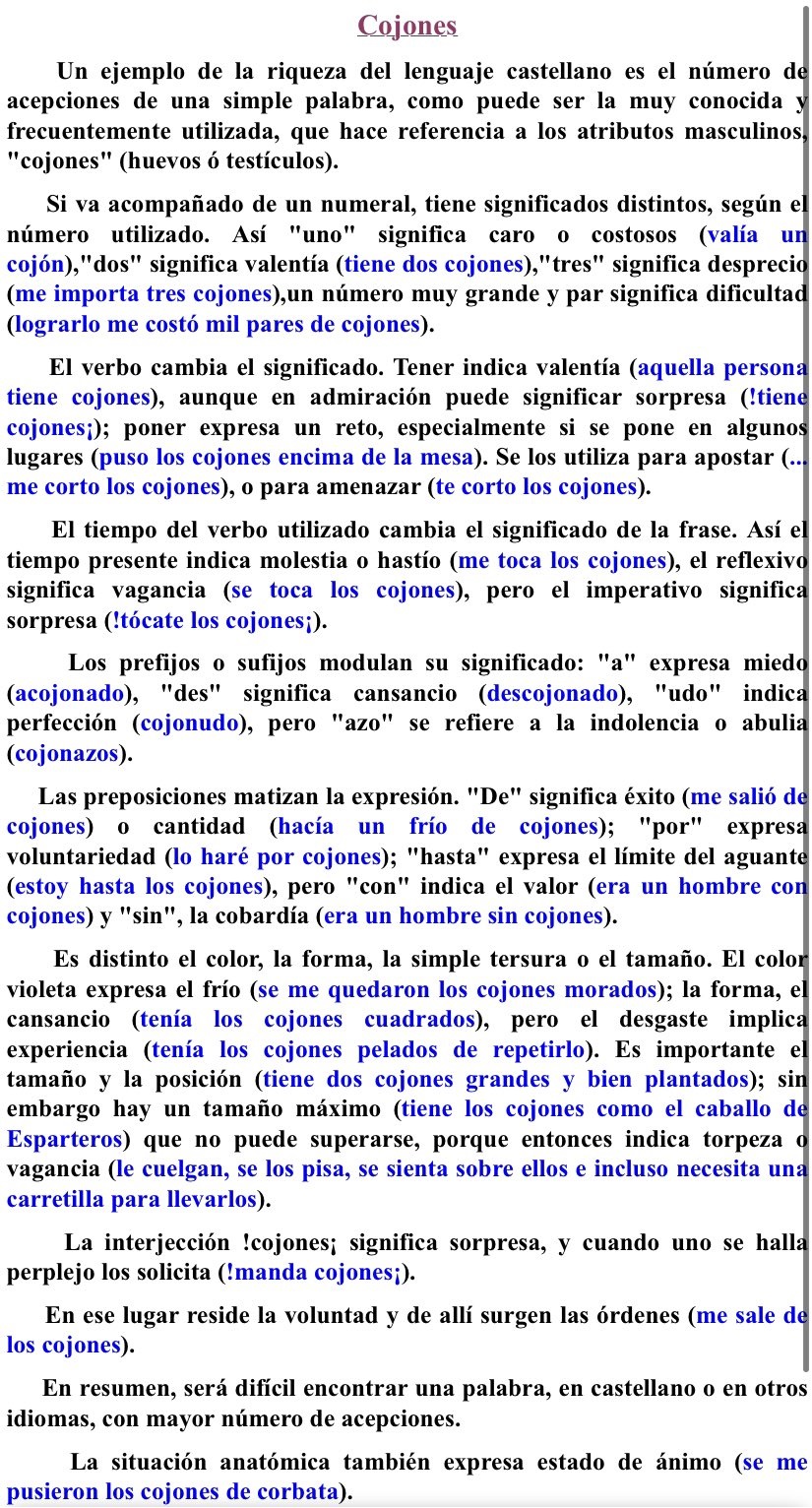 Cuando una chica dice ¡cojones! es que quiere "fuck" es como llevar las bragas en las manos. Pero aquí no va de eso, va de pedagogía del castellano y del inglés. Dos voces de mucha enjundia, peso, sustancia y porvenir, fuck y cojones. Empezamos con el "fuck" y, más abajo ¡cojones!