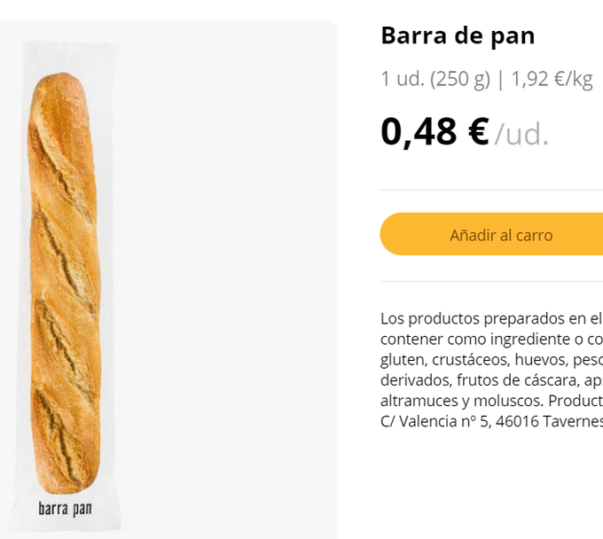 Este es el precio de una barra de pan, y lo que gana mercadona por cada kg de pan que vende... ¡ah! y lo que "trinca" el estado español, nuestros políticos
