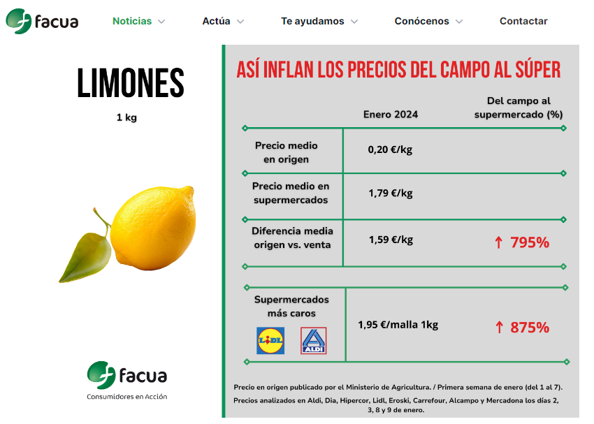 FACUA es una máquina de desinformar o manipular o directamente engañar y mentir. Aquí otro ejemplo ¿Queda alguien en alguna ciudad que no "sospeche" que desde el campo hasta el Lidl deben intervenir muchas personas y empresas? No creo que quede nadie, salvo los implicados en mentir, manipular y engañar a la población.