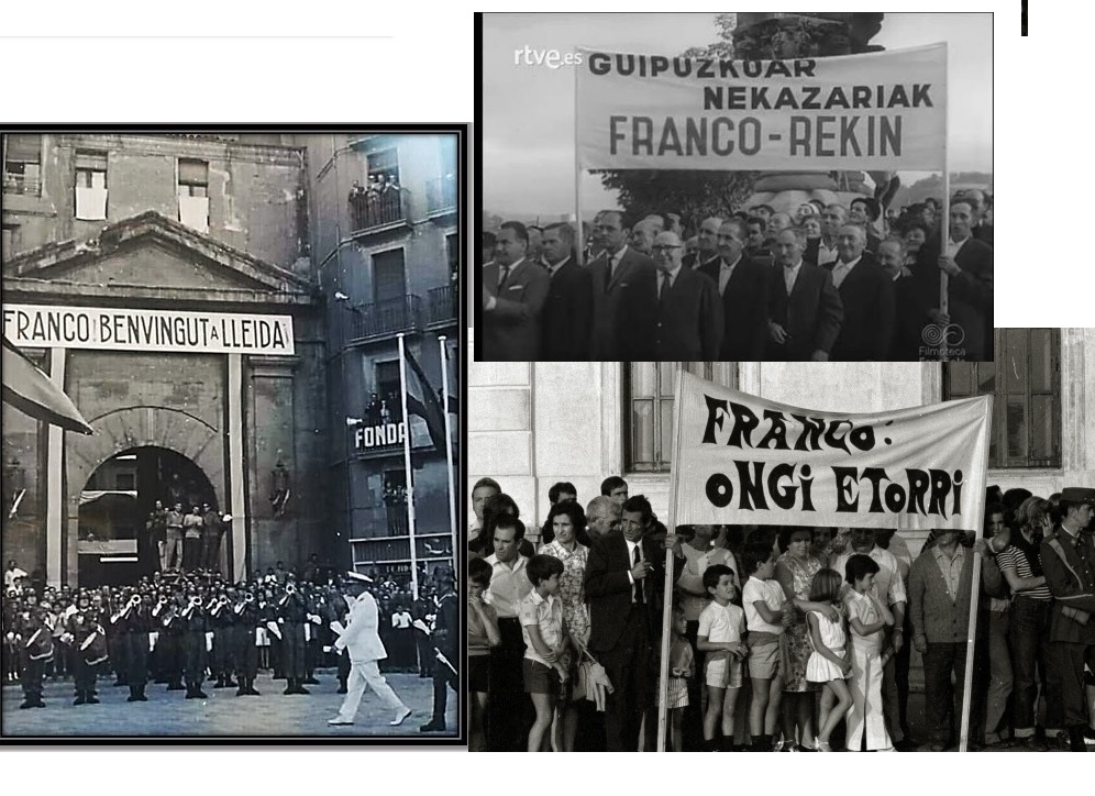 Aquí catalanes y vascos dando la bienvenida a Franco en sus respectivas lenguas: