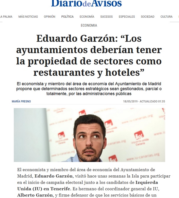Le preguntan cómo acabar con el paro en Canarias y pide el economista-hermano dos cosas: turismo caro y nacionalizar hoteles y restaurantes para que los ayuntamientos tengan dinero.
