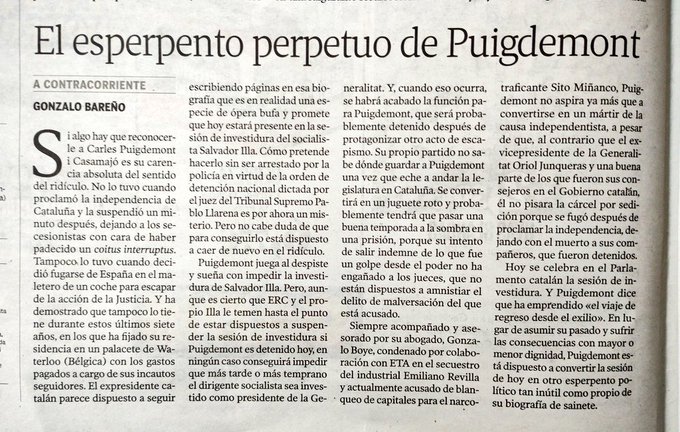 Puigdemont es un esperpento, y sus partidarios, jubilados sin nada que hacer, que echan el rato juntándose para defender algún carguillo y chupar del bote