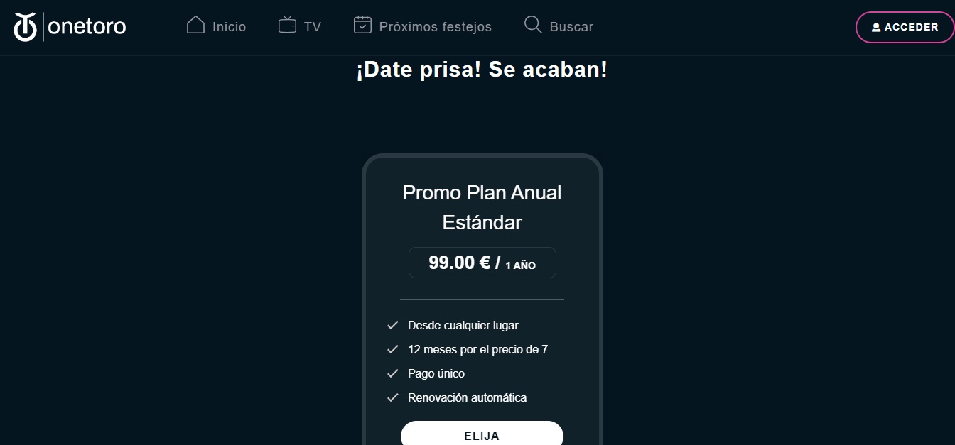OneToro ofrece una venta rápida o flash de 1.000 abonos anuales a un precio de 99,00 euros. Más barato que la cuota actual de los miembros de la plataforma... ¡Mal! Quien tiene derecho a descuento es el abonado antiguo. Los abonados nuevos a 99,00 euros "reciben" esta promoción gracias a los que pagan el abono desde el principio.