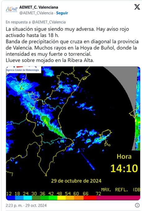Día 29, el día de la tragedia, a las 14.10 horas la Confederación Hidrográfica habla de que hay aviso rojo activado hasta las 18.00 horas.