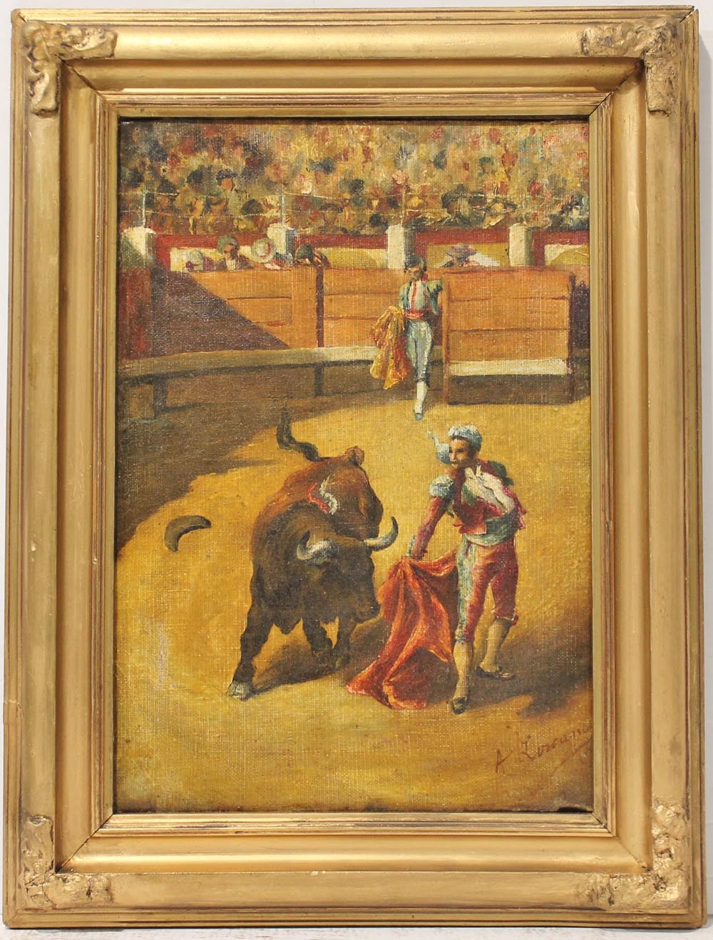 Ángel Lizcano Monedero, como ya se ha dicho, abordó en su obra diversas temáticas, entre ellas la tauromaquia. Sus representaciones taurinas se caracterizan por un enfoque costumbrista y realista, capturando con detalle escenas de corridas de toros y momentos clave de la lidia.