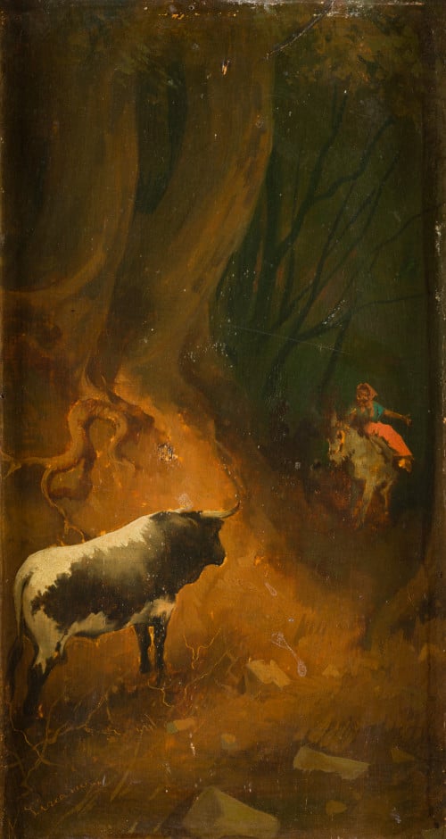 Una de sus obras más reconocidas en este ámbito es "La cogida del torero" (1877), un óleo sobre lienzo de grandes dimensiones (351 x 234 cm) que muestra el dramático instante de una cornada en plena plaza. Esta pintura forma parte de la colección del Museo del Prado.