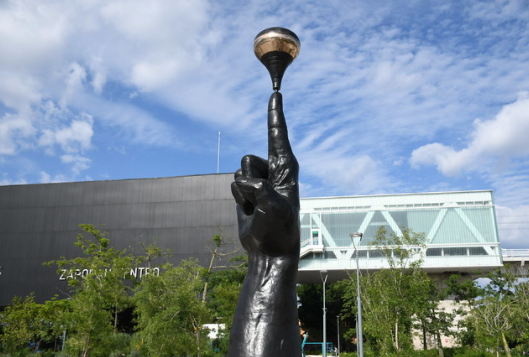 La obra representa una mano gigante que sostiene un trompo en equilibrio sobre su dedo índice. Con 5.1 m de altura, está situada frente a la estación Zapopan Centro (Guadalajara). A través del simbolismo del juego y el equilibrio, Lebrija alude a la fragilidad del presente, sugiriendo que cualquier momento podría romperse o girar fuera de control. En la Plaza Estación Centro, frente a los Arcos de Zapopan, Jalisco, México.