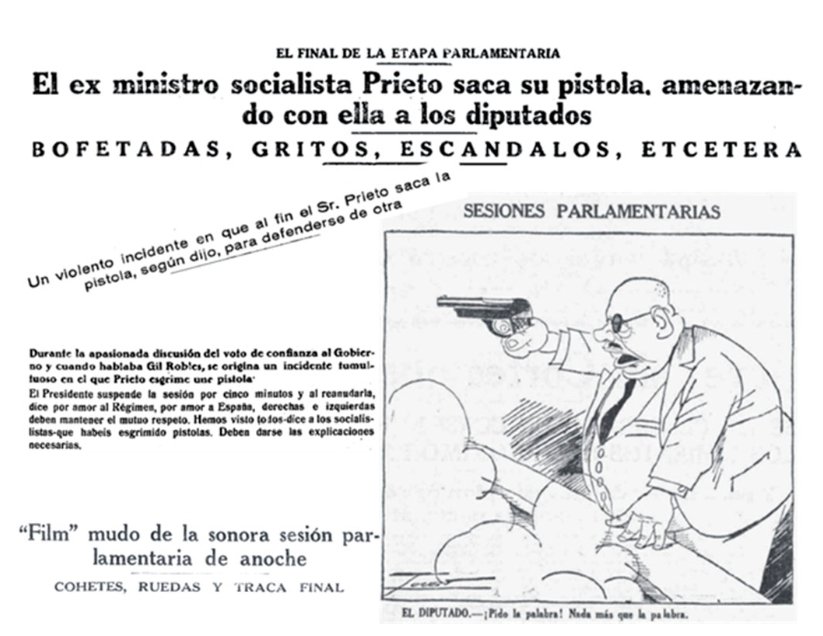 El socialista Prieto saca su pistola en el Parlamento de la Carrera de San Jerónimo.