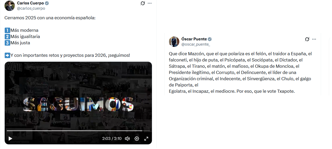Carlos Cuerpo y Óscar Puente dos caras -ocultas- para suceder a Sánchez. Que Sánchez está políticamente muerto lo sabe hasta él mismo: por eso se agarra al poder y sacrifica a sus peones. Dos estilos distintos trabajan por el sillón vacante. El ministro de Economía -Carlos Cuerpo- y el de Transporte -Puente, Óscar- cada uno a su manera.