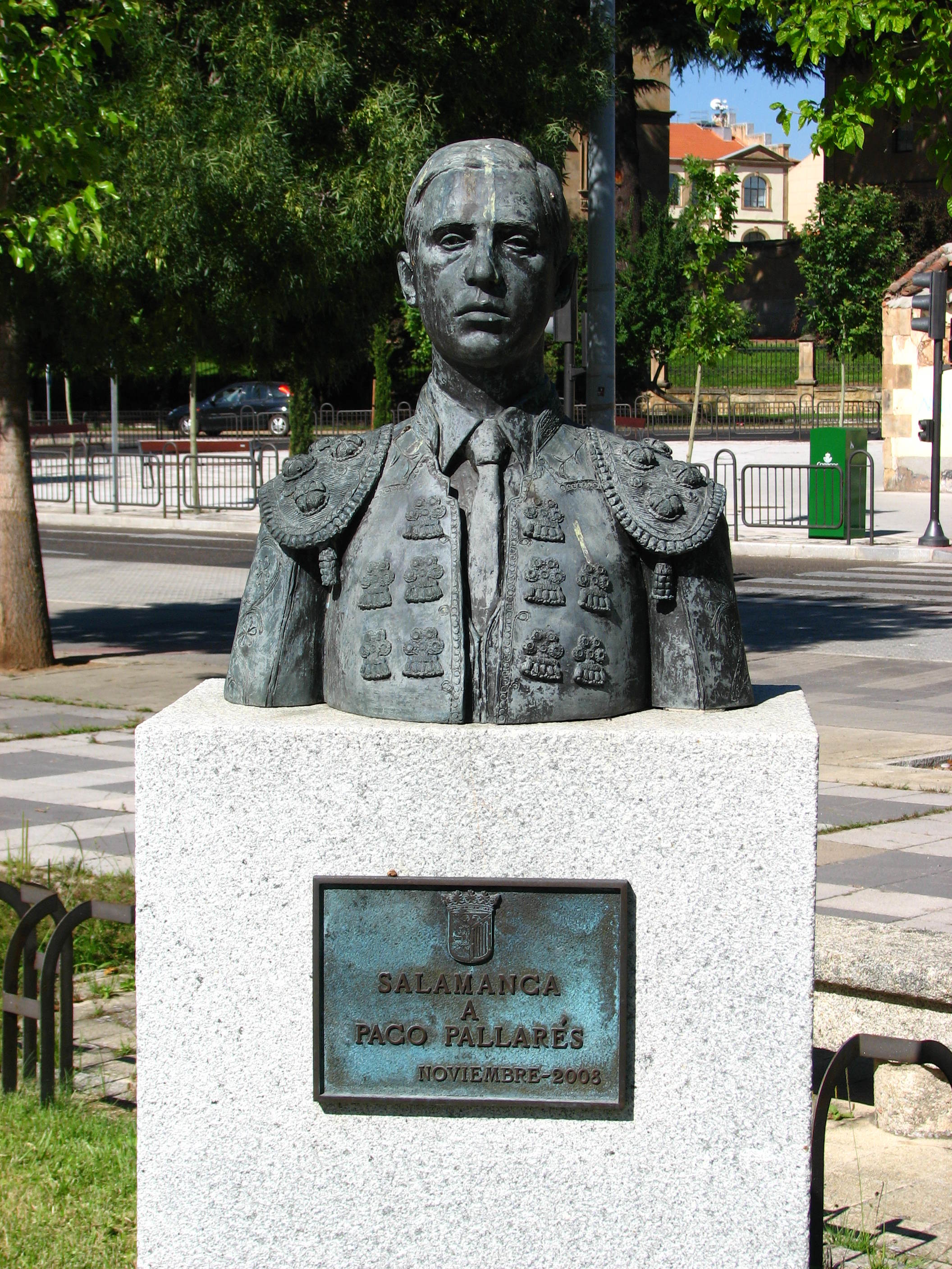 Salvador Amaya ha cultivado una notable relación con la escultura taurina, aunque comparte espacio con sus reconocidos monumentos históricos y militares, demuestra su versatilidad y su conexión profunda con elementos icónicos de la cultura española. Otra estatua a otro torero, Paco Pallarés, en la entada de la Glorieta, Salamanca.
