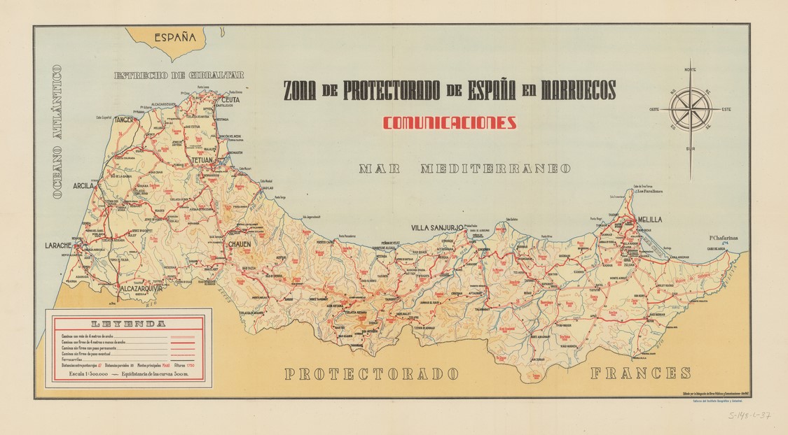Mapa oficial de 1947 “Zona de Protectorado de España en Marruecos: Comunicaciones” El Plan de Caminos de 1944