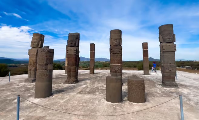 Los Atlantes de Tula, Hidalgo México Hidalgo forma parte del Camino Real de Tierra Adentro, declarado Patrimonio Mundial por la UNESCO en 2010. Este corredor histórico, que atravesaba el estado, fue fundamental para la articulación económica y cultural del virreinato, conectando la capital con las zonas mineras del norte. Sus vestigios constituyen un testimonio directo del desarrollo de la civilización hispánica en América. Camino de Real de Tierra Adentro