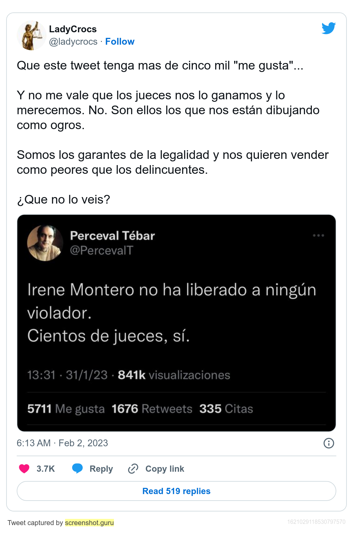 El objetivo de esa ley "solo sí es sí" es desprestigiar a los jueces (la derecha judicial) y de corrido a los medios (la derecha mediática) y a los partidos (la derecha y la ultraderecha) todos metidos en el mismo saco: ultraderecha. Ese es el objetivo primero.