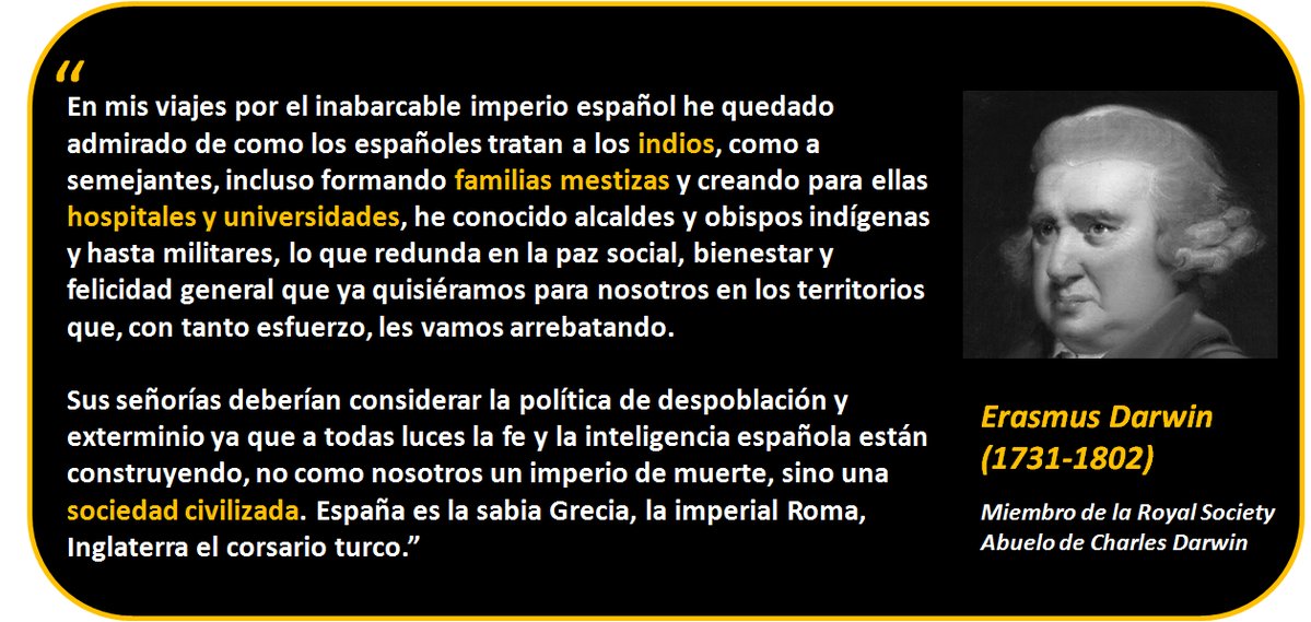 En este regreso a la historia es bueno también escuchar opiniones de gente de otros países, aunque sean enemigos acérrimos de España, o precisamente por eso, porque los países han sido históricamente enemigos, pero muchos extranjeros tienen su propia opinión: como este científico inglés que viajó por los virreinatos de España: Erasmus Darwin.