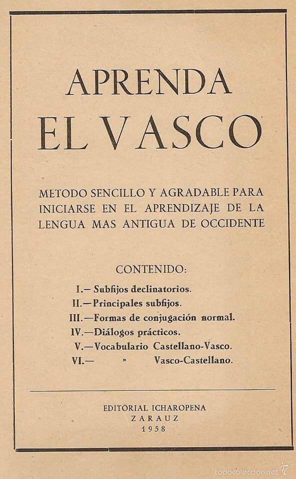 ¿Que Franco prohibió el euskera? Aquí tienen ustedes un manual de 1958, años cincuenta para aprender vasco. De venta en librerías.