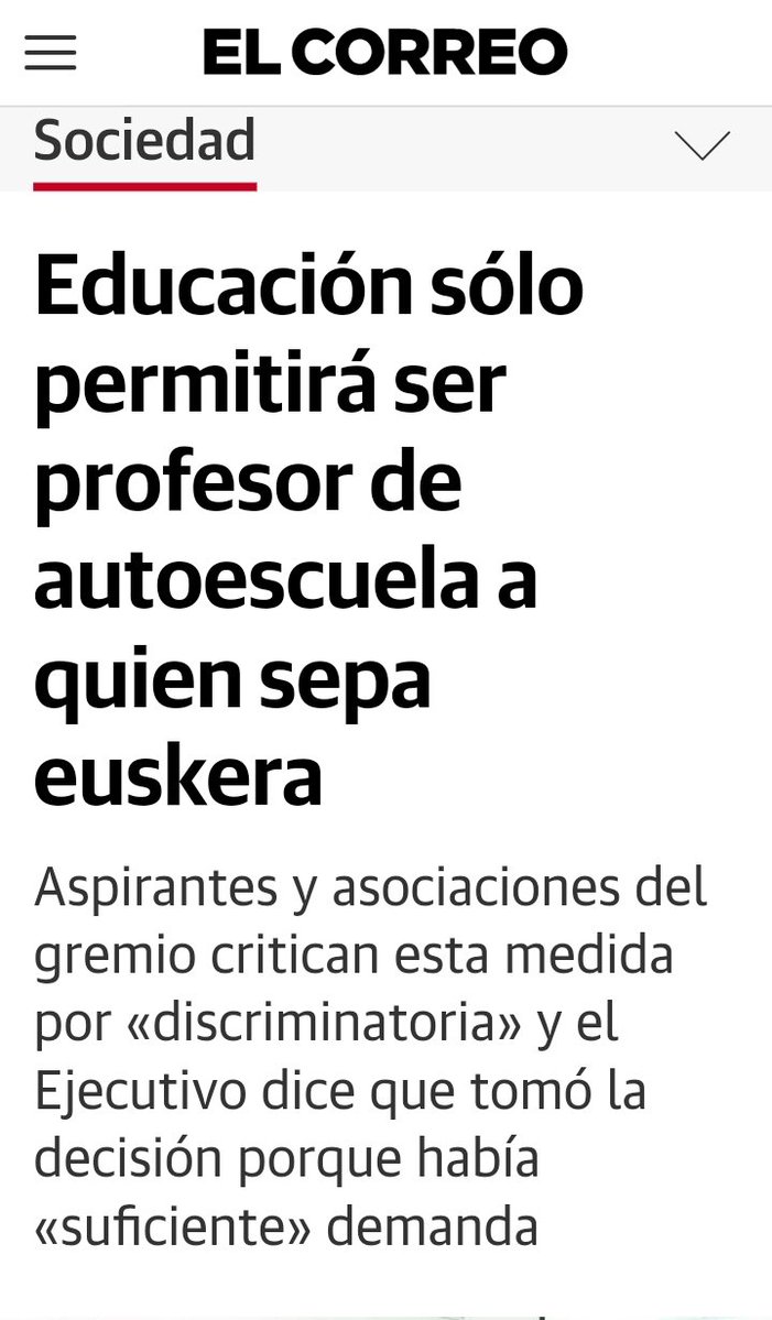 Tanto la dirección como los profesores de las autoescuelas deberán hablar euskera, por orden del gobierno vasco del PN, que tiene unos cuantos amigos a los que dar privilegios