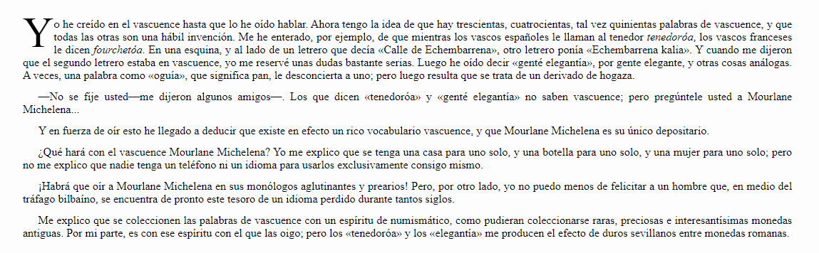 Este artículo de Julio Camba, un columnista y escritor muy famoso, es revelador porque da opinión a los expertos sobre el idioma "euskera. Que son 400 palabras. Lo dicen los expertos.