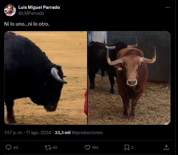 ¿Ni lo uno ni lo otro? ¿A dónde vamos a parar? Los novilleros deben estar preparados para enfrentarse a toros; será que están poco curtidos los novilleros para "lo otro"; pero no ha lugar a un punto intermedio: