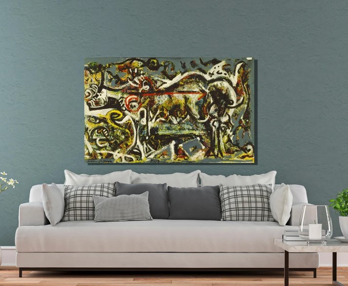 En los años 50, Pollock experimentó con colores más oscuros y formas más figurativas, mostrando un estilo en evolución que seguía siendo profundamente expresivo. Aunque nunca viajó a España, su obra fue exhibida en Madrid en 1955, generando interés entre los críticos españoles, quienes encontraron resonancias con la pasión y el dramatismo del toreo.