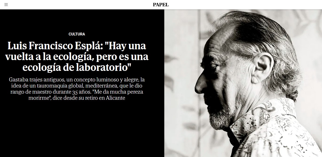 El torero Luis Francisco Esplá dice que ya no ejerce de torero; que él fue toreador; y cuando se cortó la coleta, desenchufó de "vivir en torero". Aquí escojo un par de frases del profesor toreador: