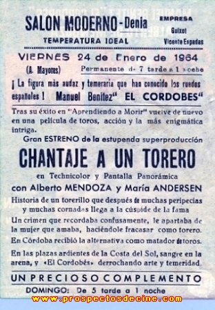 Chantaje a un torero es una película española de 1963 dirigida por Rafael Gil, un cineasta prolífico conocido por su versatilidad y su interés por el universo taurino. Esta obra combina elementos del drama, el cine negro y el folclore taurino, aprovechando la inmensa popularidad de Manuel Benítez, "El Cordobés", una figura icónica del toreo en la España de los años sesenta.