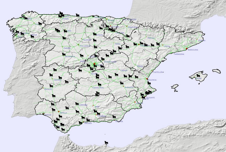 A destacar que no hay toros de Osborne en los siguientes lugares: Ávila, Valladolid, Cantabria, Gerona, Guipúzcoa, Vizcaya, Huelva, Murcia, Palencia, Castellón, Tarragona, Lérida, Barcelona y Teruel.