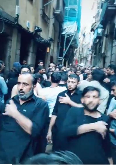 La fiesta de la Ashura o del décimo día o el día en que se conmemora el asesinato del nieto del profeta Mahoma... según las corrientes del Islam se celebra de un modo u otro. En esta foto -extraída de un vídeo de youtube- vemos cómo la celebran en Barcelona (España) un grupo de musulmanes (solo hombres) y ya voy poniendo fotos de cómo se celebra por el mundo musulmán.