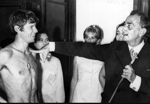 Salvador Dalí fue un genio del arte, y era además un enamorado de las corridas de toros y un asiduo a las plazas de toros. En esta fotografía bromea con El Cordobés a comienzos de los años 60.