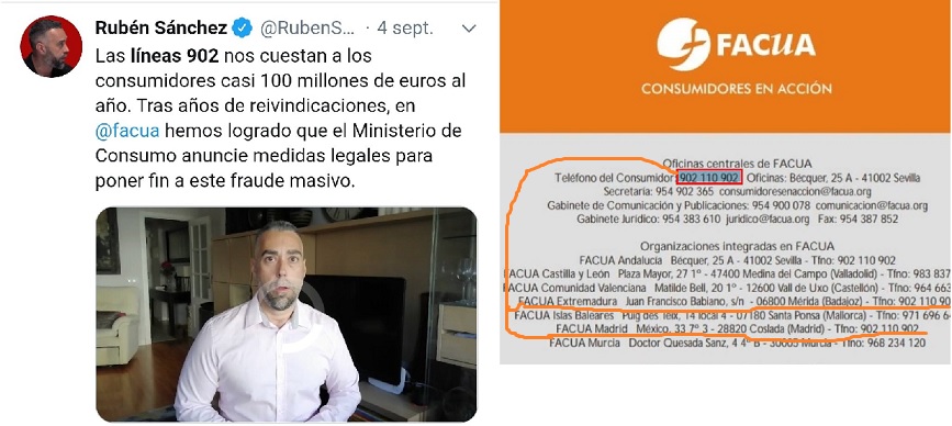 Y aquí tenemos la faena de FACUA rematada, pero bien: ellos mismos tienen un teléfono de tarificación especial para varias de sus líneas con sus asociados.