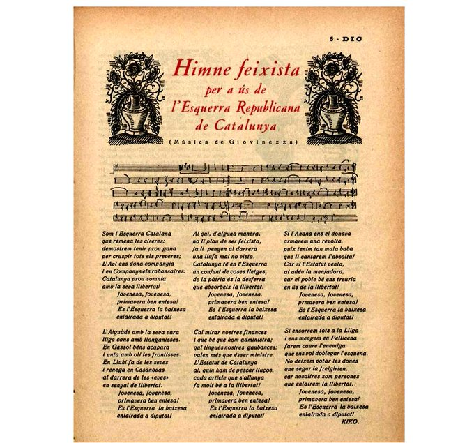La Memoria histórica que han inventado los socialistas, comunistas y separatistas españoles ha perdido algunas páginas que gracias a internet podemos recuperar y compartir, como el Himno Fascistas de Esquerra Republicana.
