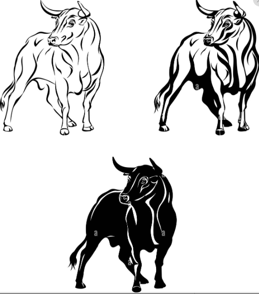Mis felicitaciones con estas siluetas de tres toros, o tres siluetas del mismo toro: