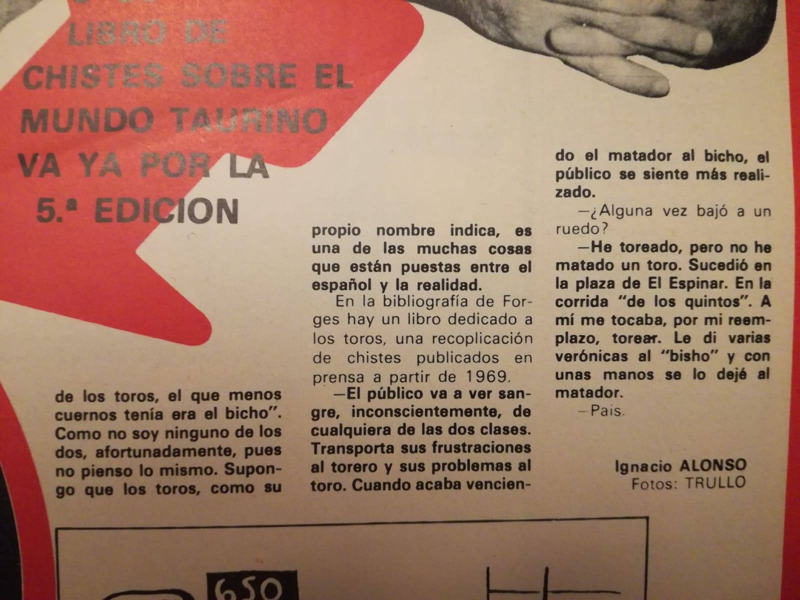 Forges el antitaurino fue crítico taurino... ¡de poco le valió la enseñanza de los maestros! Seguro que este humorista tuvo serio problemas para reirse de muchos de sus chistes JJAJAJA